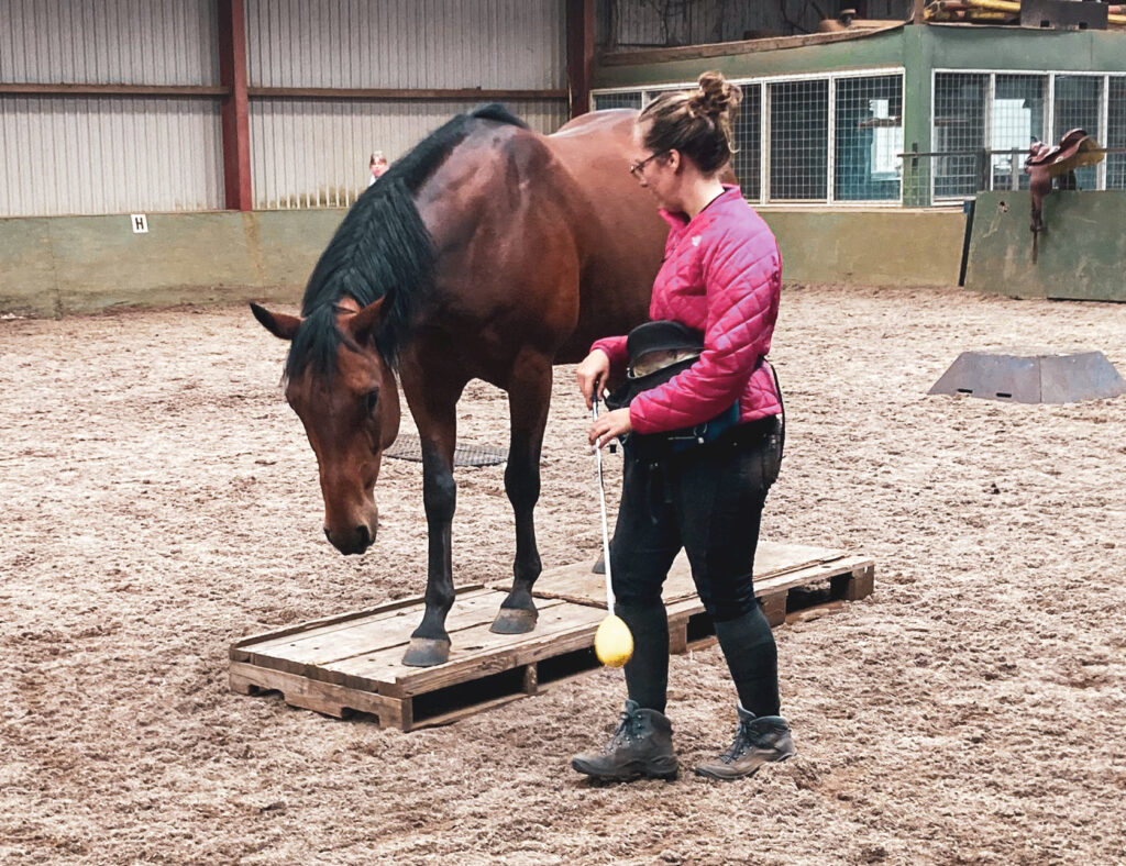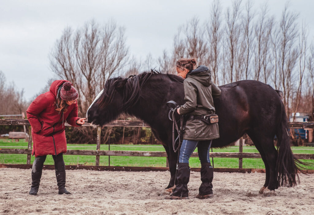 Mijn startpunt is veelal vanuit het horsemanship, het werken met lichte druk, energie en aandacht voor de (kalmerende) signalen die een paard geeft. Nu kun je denken bij druk aan hardhandigheid. De kunst van het werken met druk is om het zo licht en klein mogelijk te houden.