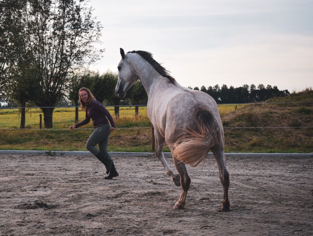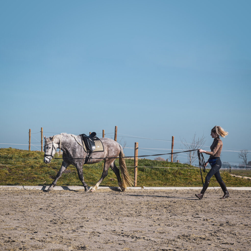 Longeren doe ik zonder hulpmiddelen. Een enkele of een dubbele lijn is een prachtige methode om je paard correct te laten bewegen.